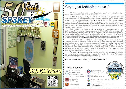 1. przygotowanie publikacji o krótkofalarstwie w postaci plakatów i ulotek, - zajął się tym Krzysztof SQ3JPD