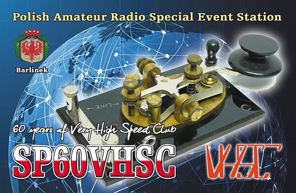 Nasz kolega Artur SP3LPR z barlineckiego Klubu Krótkofalowców pracuje pod okolicznościowym znakiem z okazji 60-cio lecie powstania RADIO TELEGRAPHY VERY HIGH SPEED CLUB (VHSC).