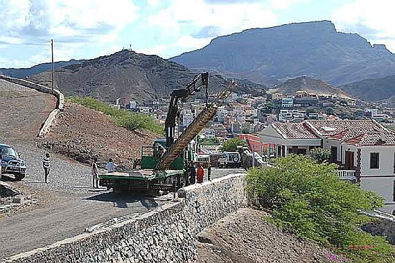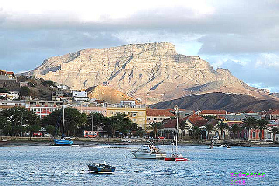 Widok z portu w Mindelo na wzgórze Monte Verde