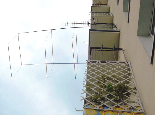 Zainstalowałem antenę tym razem na dachu wieżowca (33m up.). Niestety okazało się, że teraz antena nie pracuje tak dobrze jak na wysokości III pietra (12m up.) Instalacja anteny na balkonie powodowała, że antena wisiała w wolnej przestrzeni, a na dachu jest tylko ok. 1,5m nad dachem żelazobetonowym.