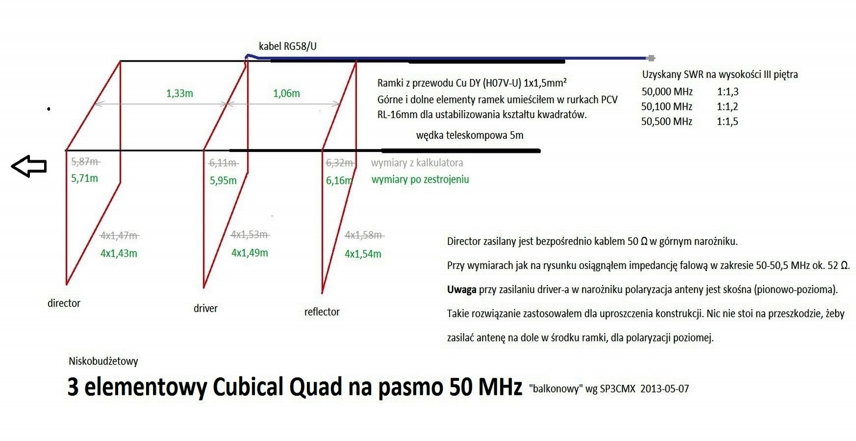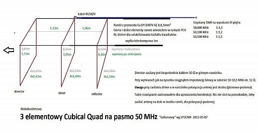 Przedstawiam niskobudżetową konstrukcję 3 elementowego Cubical Quada na 6m autorstwa Mietka SP3CMX w Gorzowa Wielkopolskiego.