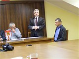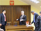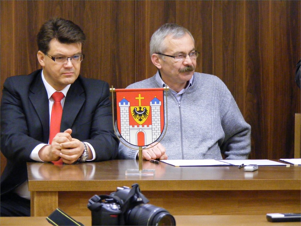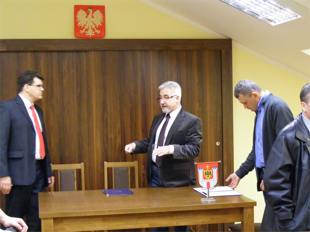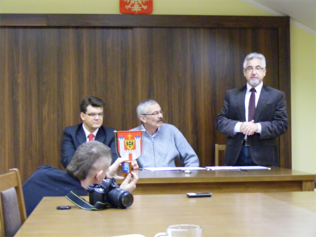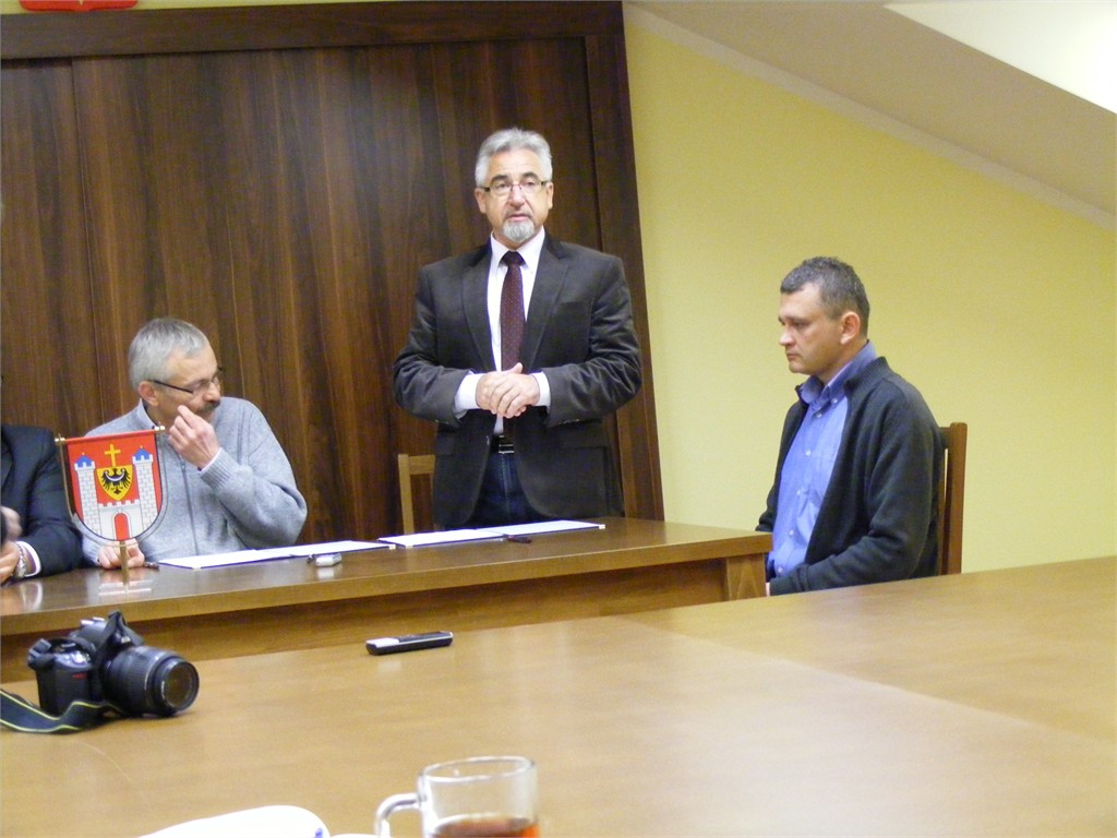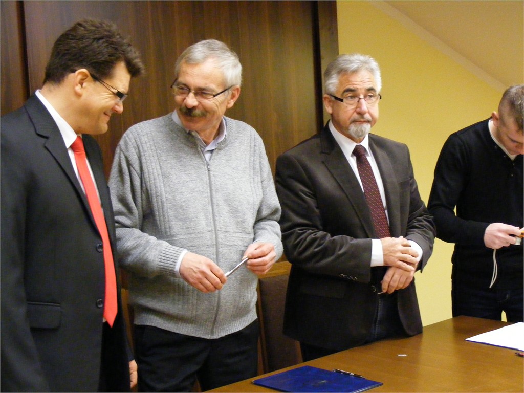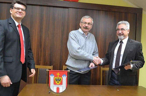 Krzysztof Rutkowski, Bogdan Chorążyk oraz burmistrz Wiesław Szkondziak po oficjalnym podpisaniu umowy. (fot. Jakub Nowak)
