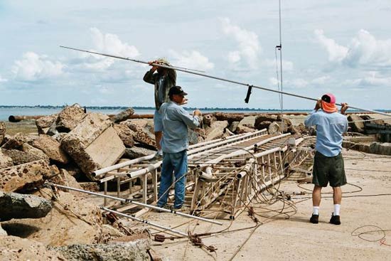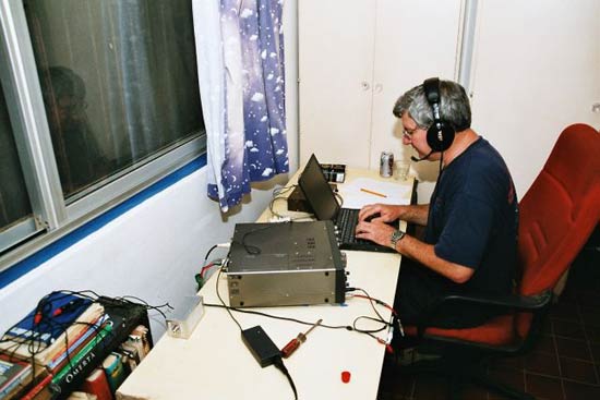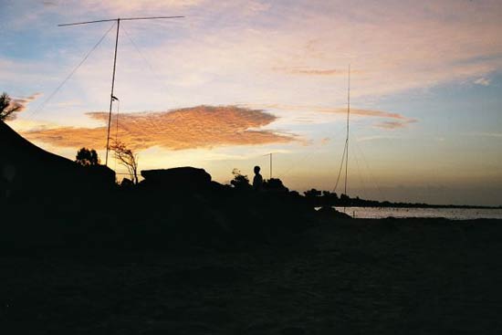 Amerykanie przylatywali na raty. Pierwsza grupa zabrała się za rozpakowywanie swojego wielkiego bagażu (loty przez Atlantyk dopuszczają 2 x 32 kg bagażu na osobę). Po paru godzinach postawili pierwszą antenę na plaży i uruchomili się na 21 MHz SSB pod znakiem C5Z z jednego ze studii Radio Syd. Licencję C5Z załatwiłem im już we wrześniu 2003.