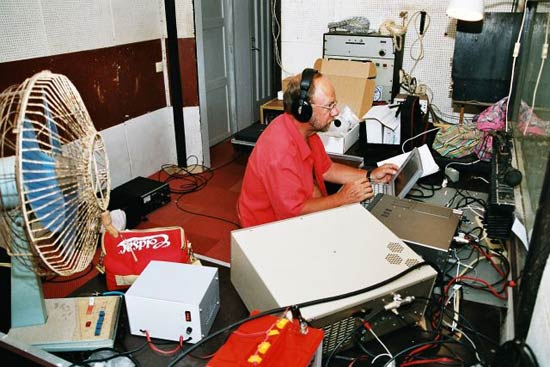 Zbadałem też możliwości dostania się do Gambii. Szybki statek kursujący wzdłuż brzegów Senegalu był gdzieś w naprawie a zamiast statku dostępny był autobus o 7-mej rano. Całą noc nadawałem i o 6-tej rano wyjechałem taksówką z hotelu. Podróż autobusem po wertepach trwała 7 godzin, potem jeszcze godzinę promem przez rzekę Gambia i taksówką do celu. Celem była nieczynna od roku radiostacja średniofalowa Radio Syd, położona tuż koło głównego miasta - Banjul. Rozpakowałem walizkę, wędkę zamocowałem w pobliżu kranu z wodą (w celu szybkiego uziemienia skrzynki antenowej) i dokładnie po 12 godzinach od zrobienia QRT w Dakarze jako 6W/SM0JHF byłem ponownie w eterze, tym razem jako C56JHF. Potem poszedłem do pobliskiej restauracji i wypiłem 5 piw, jedno po drugim.