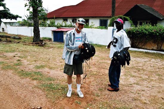 Po tygodniu pobytu dostałem wiadomość, że grupa Amerykanów, którzy wypytywali się mnie o Gambię przez ostatnie miesiące, przylatuje 17-go października nad ranem. Nastawiłem budziki i zamówiłem taksówkę. Przed wyjazdem na lotnisko zrobiłem kawę i sprawdziłem propagację na niskich pasmach. SP2FAX na 3.5 MHz grzmiał w Gambii. Jeszcze kilka QSO i do drzwi zaczął dobijać się taksówkarz. Na lotnisku nie było prawie żywego ducha. Obudziłem panienkę w "Information" ale według jej danych to samolot już dawno wylądował. Po godzinie dowiedziałem się, że nie wylądował ale wystartował z Baltimore w kierunku Banjul... Pojechałem ponownie do domu i pojawiłem się na lotnisku 6 godzin później.