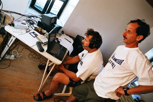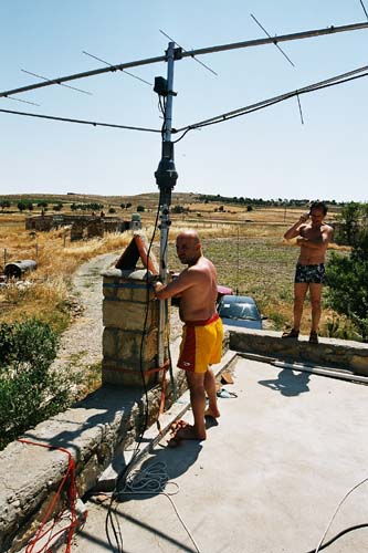 Gdy dotarliśmy do letniego QTH Aziza, wszystko było prawie gotowe do zawodów. Trójka włoskomówiacych przyjechała wcześniej i zainstalowała 2 anteny na 50 MHz, antenę na 144 MHz, dwie stacje, wzmacniacze, komputery, etc. Andrea HB9DUR pomimo dość młodego wieku ma wiele doświadczenia i wiedzy i był technicznym guru grupy. Zresztą większość urządzeń to jego własność.