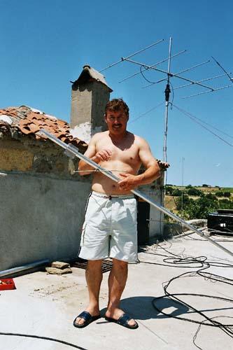 Oscar IK2AQZ w czasie prac antenowych na dachu |