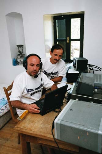 "Nas" to znaczy Andrea HB9DUR, Mario IW2HUZ, Oscara IK2AQZ i mnie. Andrea HB9DUR mieszka na południu Szwajcarii ale ostatnio spędza dużo czasu w Turcji i ma nawet turecki znak wywoławczy - TA1ZK. Włochów namówil Andrea. Głównym celem wyprawy były zawody IARU na 50 MHz w weekend 21-22 czerwca 2003.