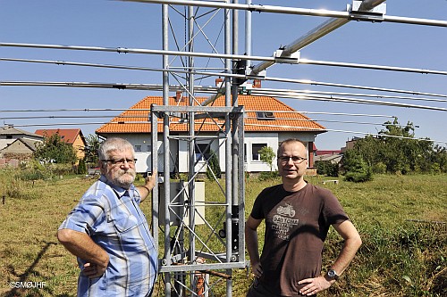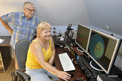 Kilkanaście kilometrów na północ od Kielc, na skraju miasteczka Bodzentyn rośnie nowa stacja contestowa. To wspólne dzieło ojca i syna - Zbigniew, SP7EWL przeniósł się tutaj kilka lat temu, a syn Tomasz, SP7UWL dojeżdża do pracy w eterze lub przy antenach. ![]() Tomek, SP7UWL w końcowej fazie instalacji kierunkowych anten na wyższe pasma. ![]() Dwa maszty z antenami i otwarty horyzont we wszystkich kierunkach a w dali widać Swięty Krzyż. SP7EWL (po lewej) i SP7UWL (po prawej). ![]() Nowoczesna stacja z możliwością zdalnego sterowania - SP7UWL (siedzi) i SP7EWL (stoi). ![]() Anteny są opuszczane i podnoszone silnikiem elektrycznym. Po lewej: SP7EWL , po prawej: SP7UWL. ![]() Atmosfera domowa jest przyjazna radioamatorstwu, nawet XYL Zbigniewa ma znak wywoławczy. Grażyna, SP7TWL przy stacji siada rzadko. Zbigniew, SP7EWL jest nadawcą od ponad czterdziestu lat, a Tomek ma 39 lat i odkąd pamięta słyszał w domu gadające czarne skrzynki u ojca. Gdy miał 9 lat dostał znak nasłuchowy i pojawiał się w kieleckim klubie SP7KTE. Na licencję musiał poczekać do czasu gdy skończył 15 lat. Dziś jest Tomek bardzo doświadczonym operatorem i ma ambicje contestowe. Od ubiegłego roku jest członkiem zespołu SN0HQ w zawodach IARU HF Championship i powierza mu się tak odpowiedzialne stanowisko jakim jest główna stacja 14 MHz CW. W domu anteny są skromniejsze niż na stacjach biorących udział w grupie SN0HQ, ale konkurencyjne. Celem jest zbudowanie dobrej stacji dla jednego operatora pracującego na wszystkich pasmach z dwoma radiostacjami - SO2R. W pracach technicznych nieocenią pomocą jest ojciec. Zbigniew, SP7EWL jest technikiem z dużym doświadczeniem i pracował niegdyś w pobliskim Centrum Satelitarnym w Psarach. |