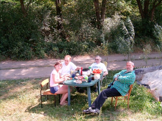 "Śniadanie na trawie - Asia, Marek SQ3JPM, Wiesiu SP6HEQ i nasz gospodarz Waldek SP3FFP "