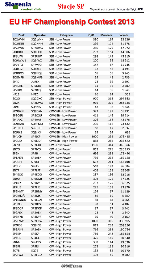 WYNIKI ZAWODÓW Z ROKU 2013
